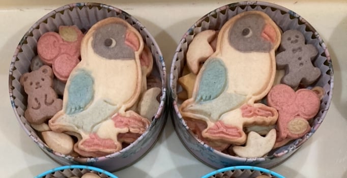 原材料:小麦粉、バター、粉糖、卵、ココア、ビーツ、かぼちゃ、紫芋、トレハロース、オリゴ糖、スピルリナ色素、クエン酸三ナトリウム(原材料の一部に小麦、卵、乳を含む)